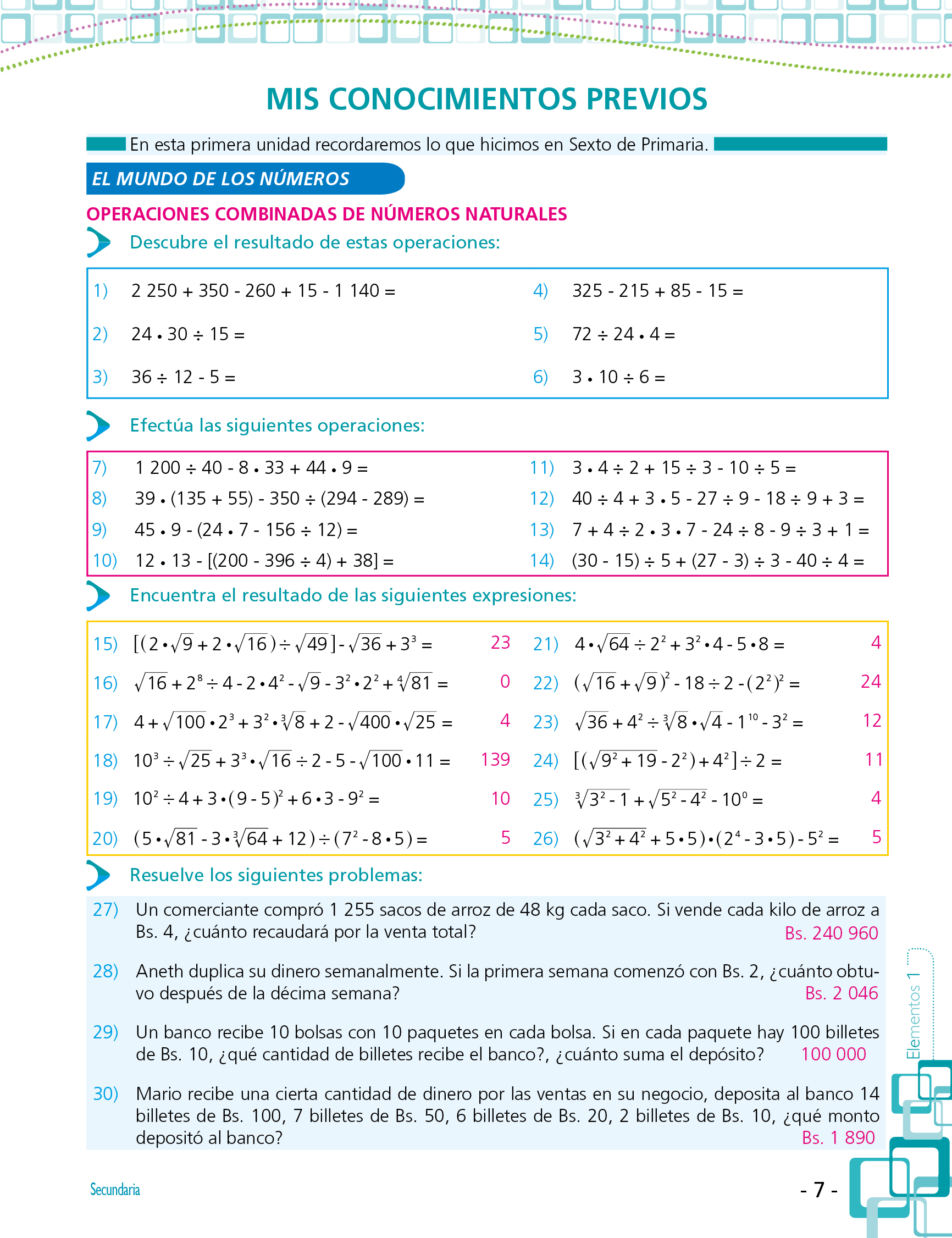 1ro. de Secundaria «MATEMÁTICAS»