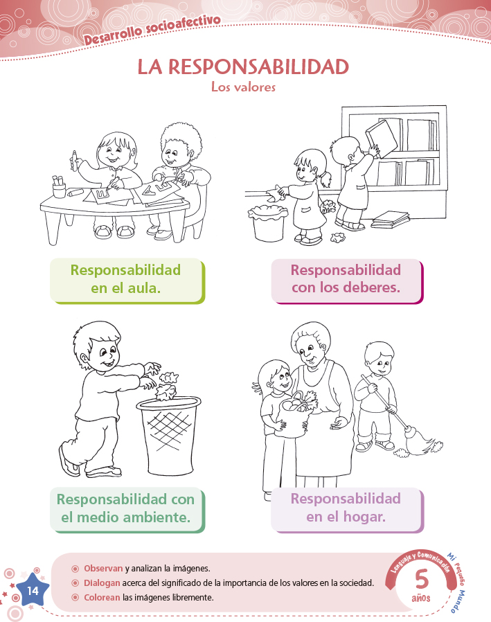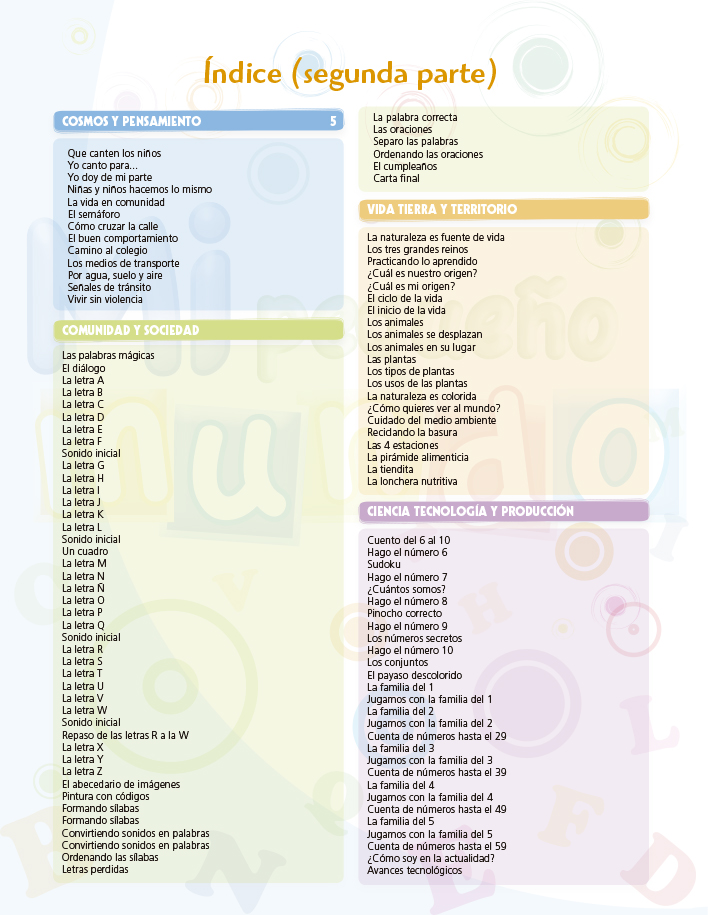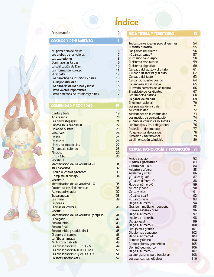 Cuaderno de trabajo con fichas lúdicas interactivas creativas, elaboradas bajo los enfoques transversales que responden a las características del desarrollo de los niños y las niñas. Incluye imágenes que muestran la diversidad de nuestro país para que puedan ir conociendo otros contextos culturales.